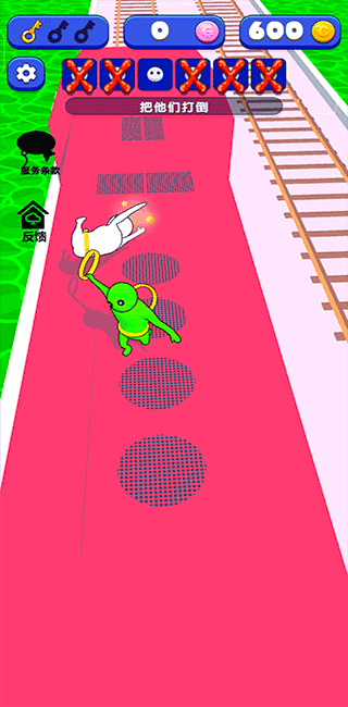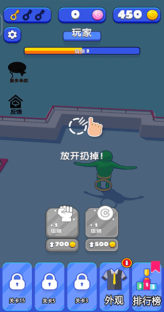 3、游戏中,你需要打败敌方角色,然后拖动它并把它扔出去(拖动它之后,你可以多旋转几次,利用惯性将它扔出去);