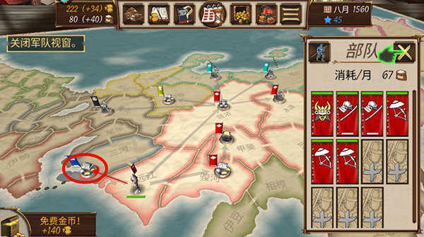 调整兵力会消耗步数。玩家需要点击右侧的沙漏进入敌人的回合并等待敌人完成移动才能获得步数。慢慢的移动到地方附近,等到可以攻击该地方的时候,然后直接选择当地的部队进行攻击。