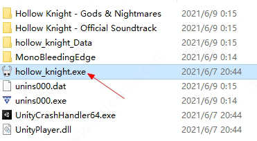 2、在游戏根目录下,双击Hollow Knight.exe文件进入游戏;