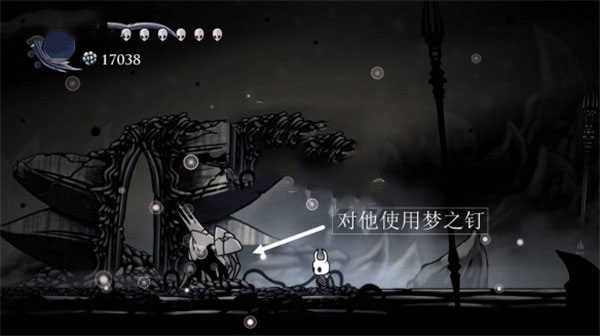 12、获得觉醒的梦之钉后,前往远古盆地,下图所示位置,在雕像上使用梦之钉,进入白宫;