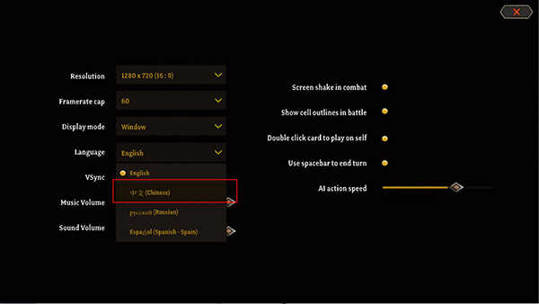3.进入游戏或英文界面,点击此处的选项进入设置;