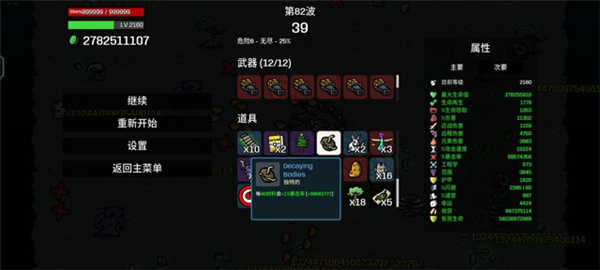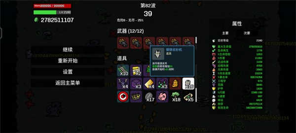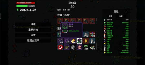 5.土豆发射器和土豆发射器的伤害为20%远程伤害和20%生命加成。有了之前道具的加持,生命值已经非常恐怖了。它与伤害加值叠加。高暴击伤害,瞬间秒杀所有怪物!我才玩到80级,伤害就突破千亿了。