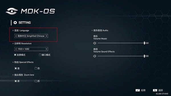 4.游戏默认支持中文,分辨率、特效、镜头、音效等也可以在设置选项中调整;