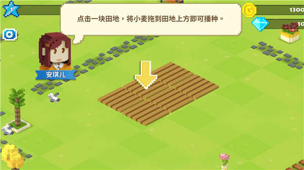 5.按照提示,点击田地,将小麦拖到土地上即可完成播种。