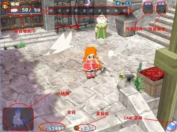 2、找到录音机后(穿过废墟和森林),返回城镇,与爷爷对话两次,然后调查房屋一楼的壁炉(钻进去),打开礼盒得到,与爷爷交换(找到之前不能离开城市)。归还录音机后可以获得,但剧情进展后就无法获得。