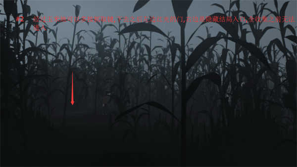 2.穿过玉米地后,可以尝试多次按下抓取按钮。下去后左边有一个红色的门,右边有一个隐藏的结局入口。在收集完所有物品之前,您无法进入。