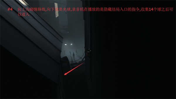 4.以上为剧情路线。上面是光球。录音机正在播放隐藏结局入口的指令。集齐14个球后即可进入。