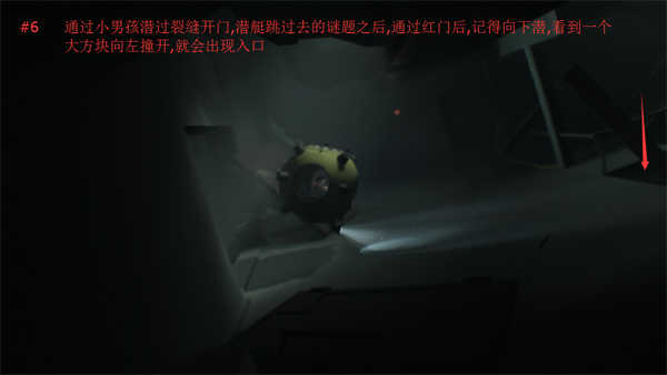 6.通过小男孩偷偷从门缝里开门的谜题后,在前厅跳过去,穿过鸿门后,记得往下潜,看到一个大块时,向左敲一下,入口就会出现。