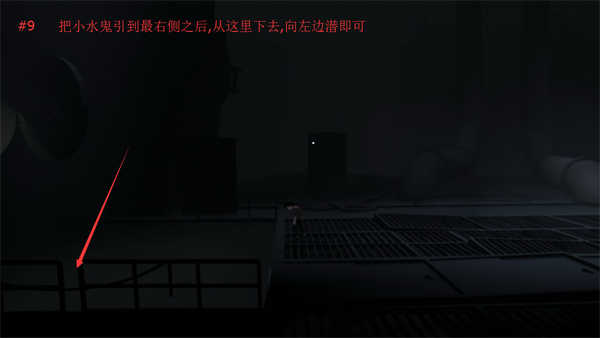 9、引导小水鬼到最右边后,从图中的位置下去,向左潜入。