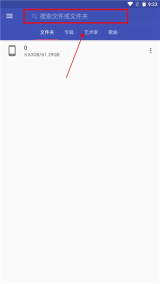 1. 在本站下载并安装软件并打开。进入软件首页后,您可以直接搜索手机中的文件夹来查找歌曲;