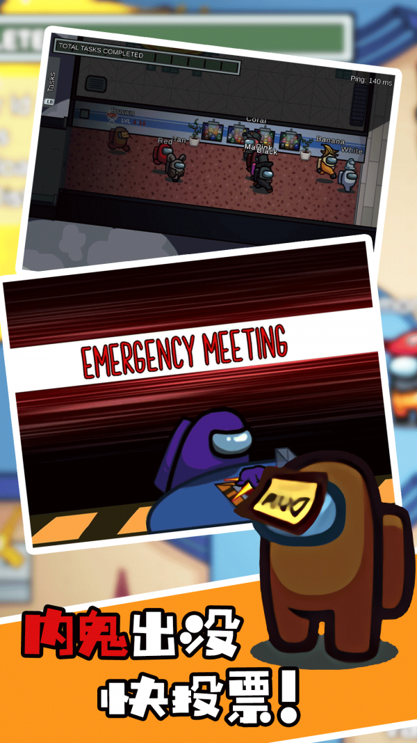 在不同的场景中仔细寻找线索,每天更新很多有趣的任务。游戏里有很多场景。找出宇航员身上的鬼,快速完成系统中的任务,在游戏结束前成功杀死鬼。