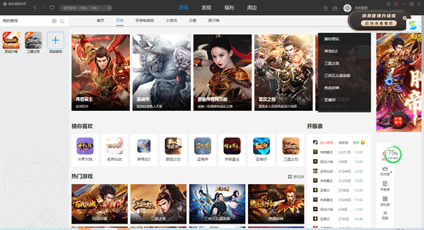 360游戏大厅电脑版是360公司正式推出的一个游戏厅,很有意思,很好玩。360游戏大厅电脑版支持多个小开口的功能,软件还可以为您提供加速功能,方便用户在玩游戏的过程中加快自己电脑的运行速度。